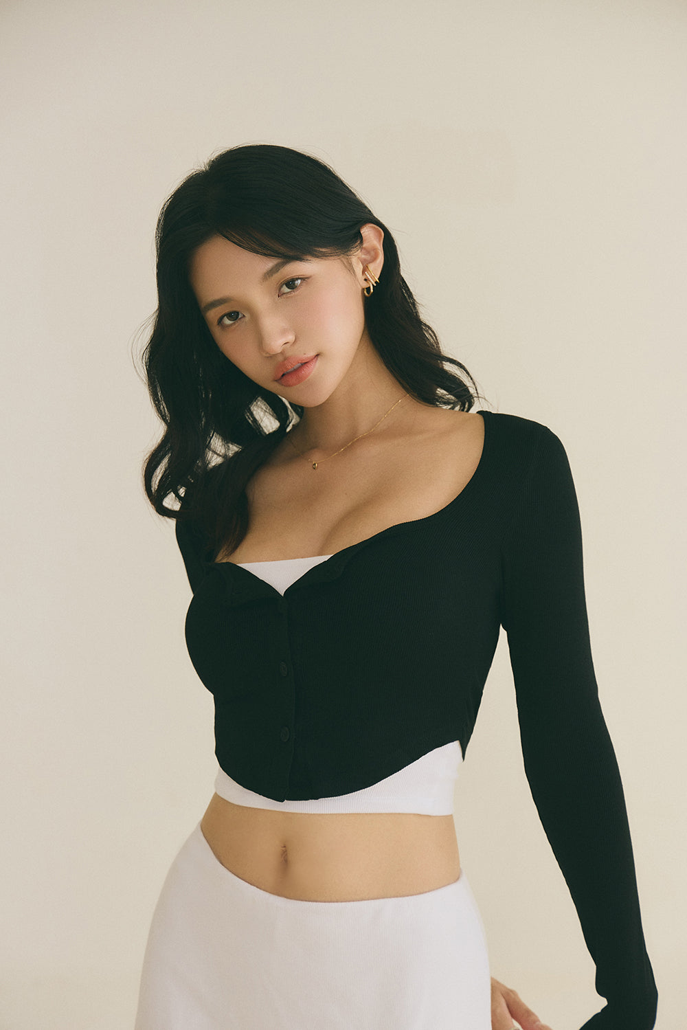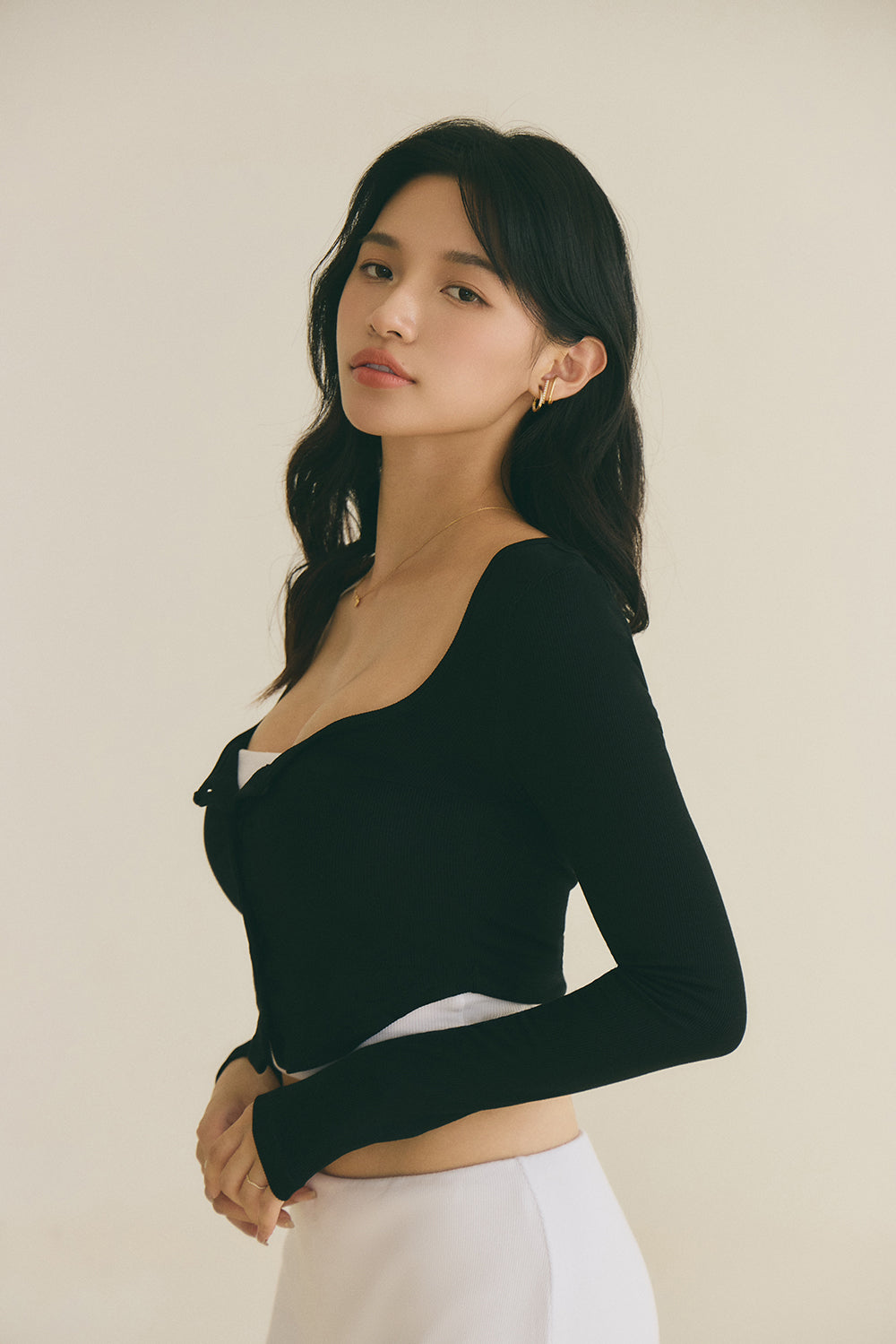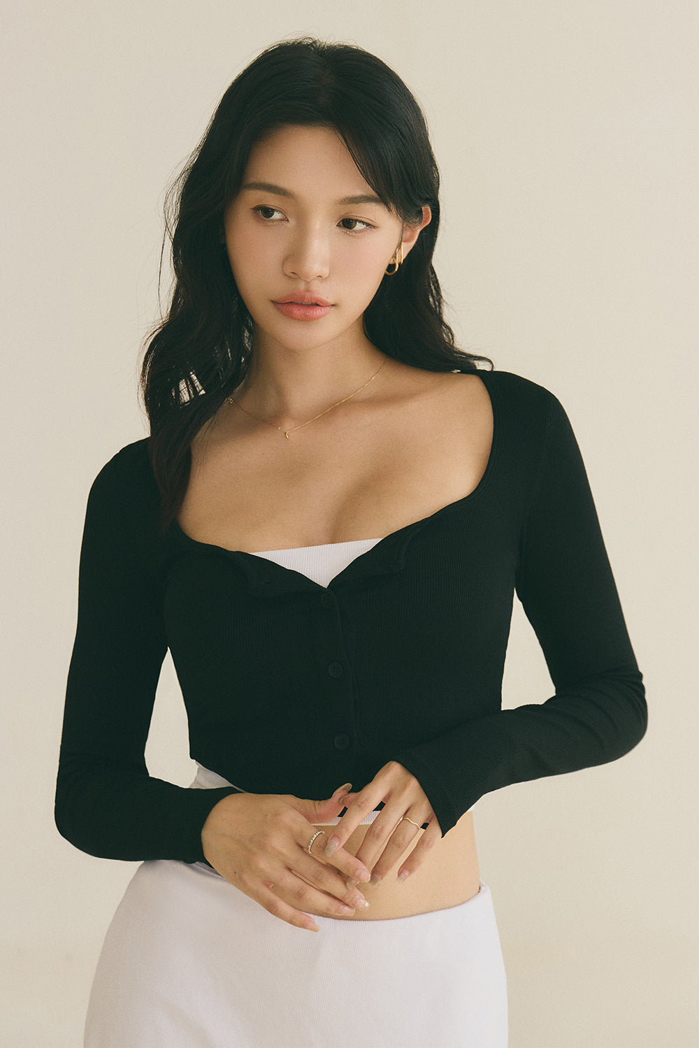搶先評價 “Elegant Rib Knit Square Neck Crop Top