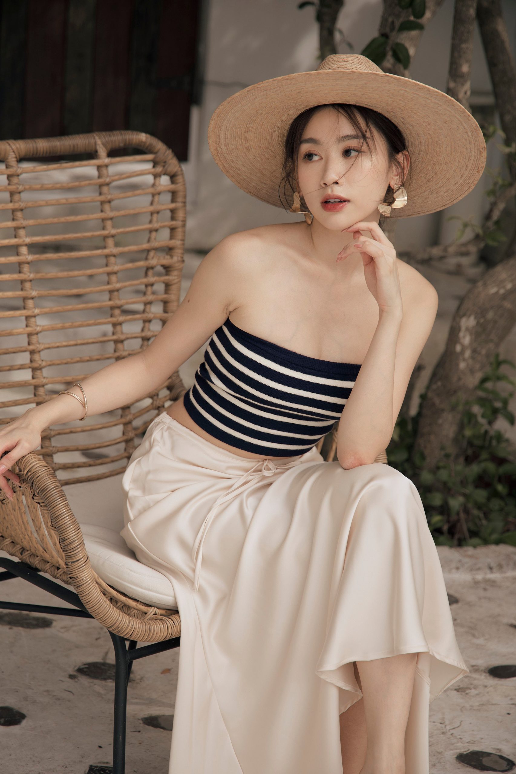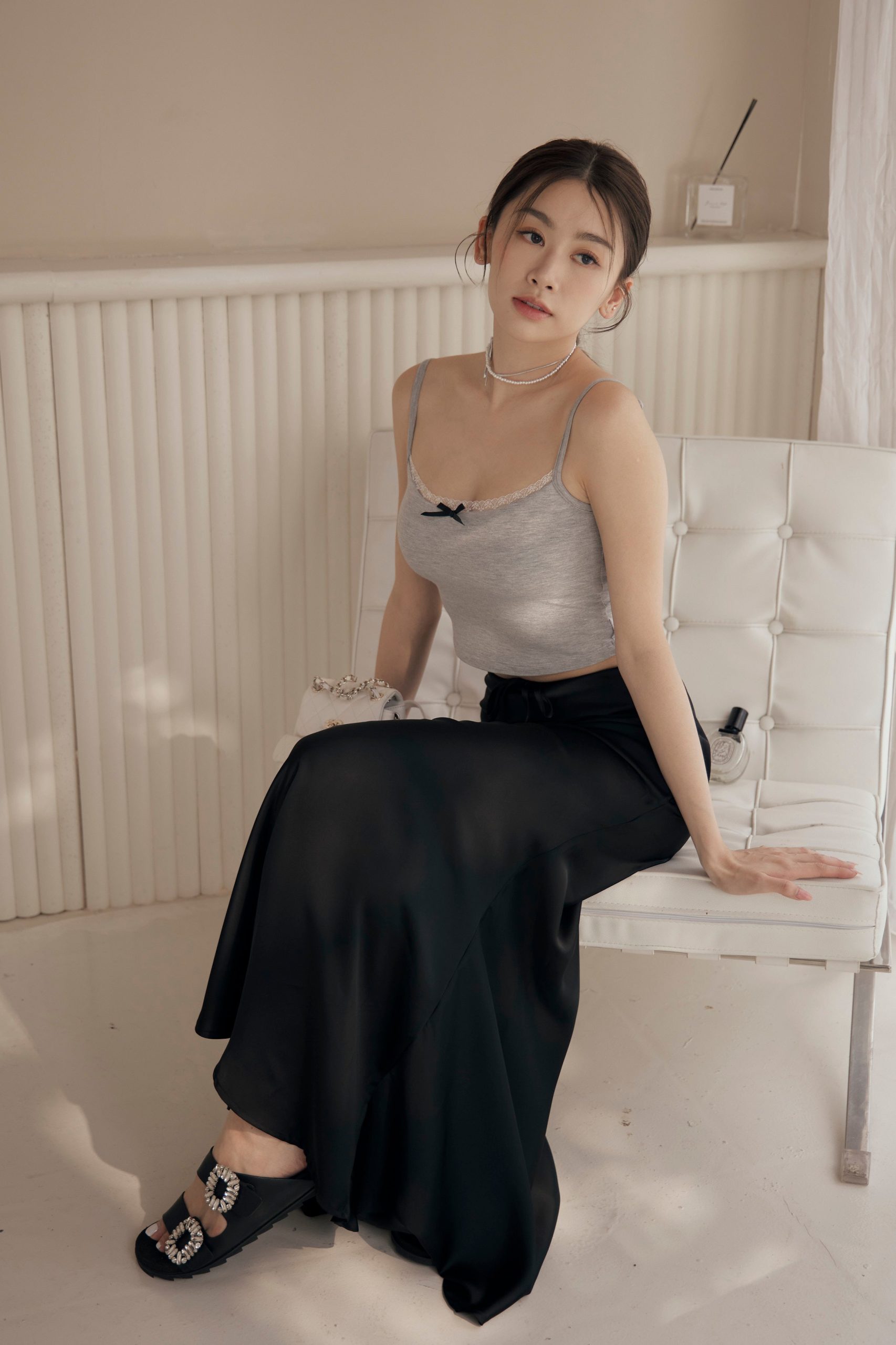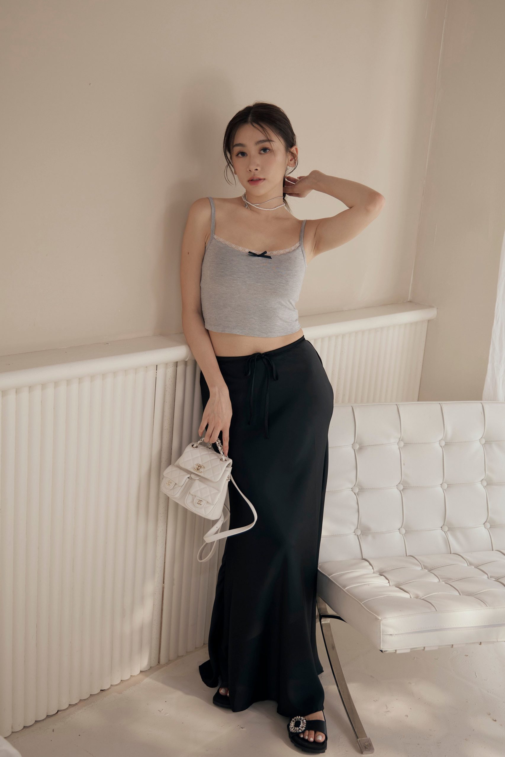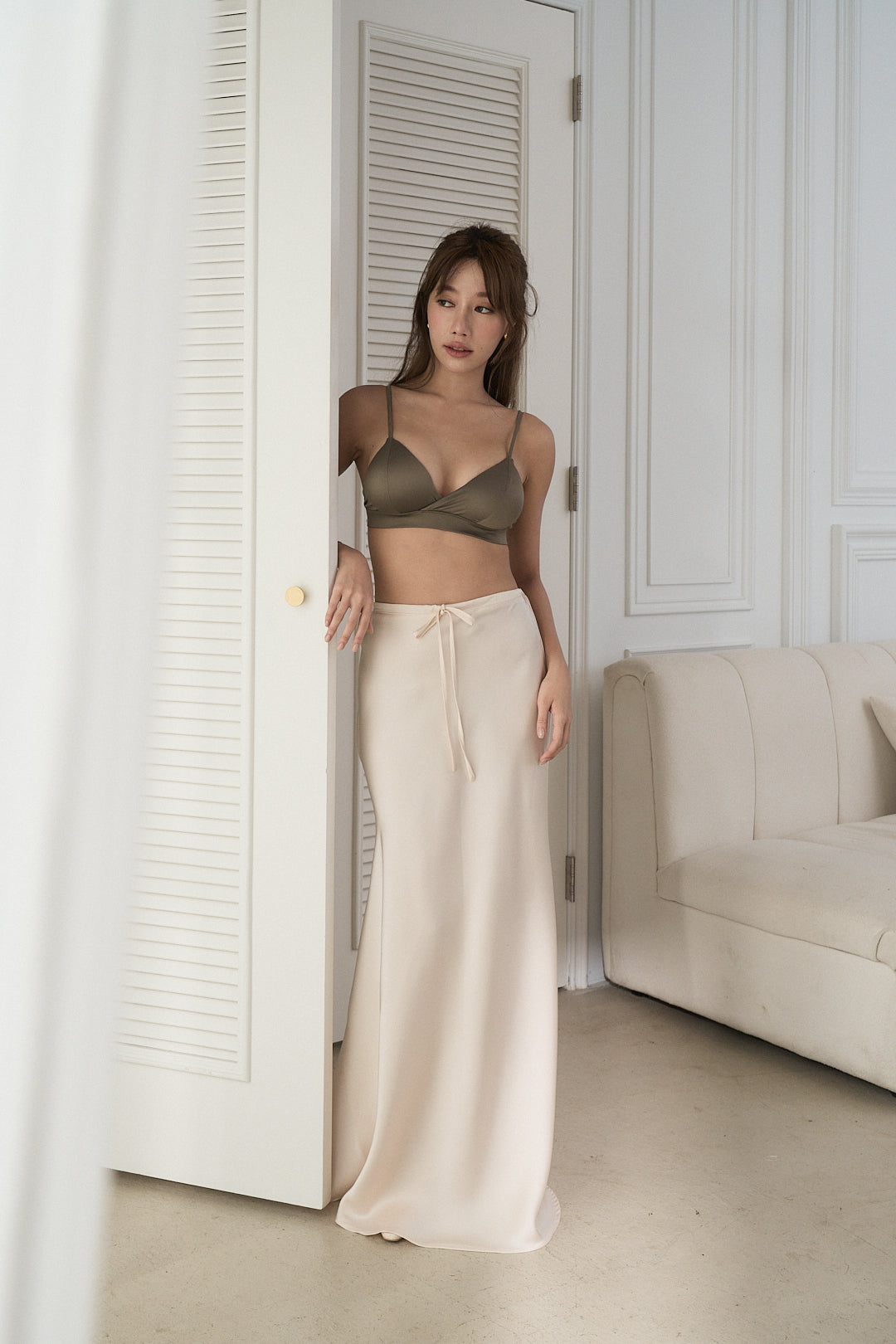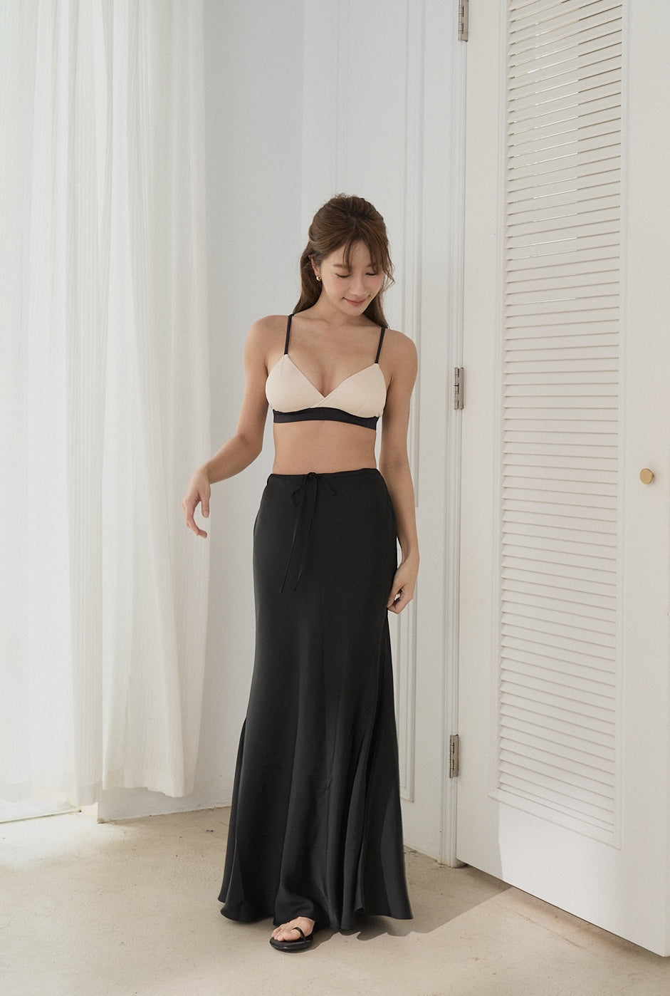 BEIGY – 緞面魚尾綁帶長裙